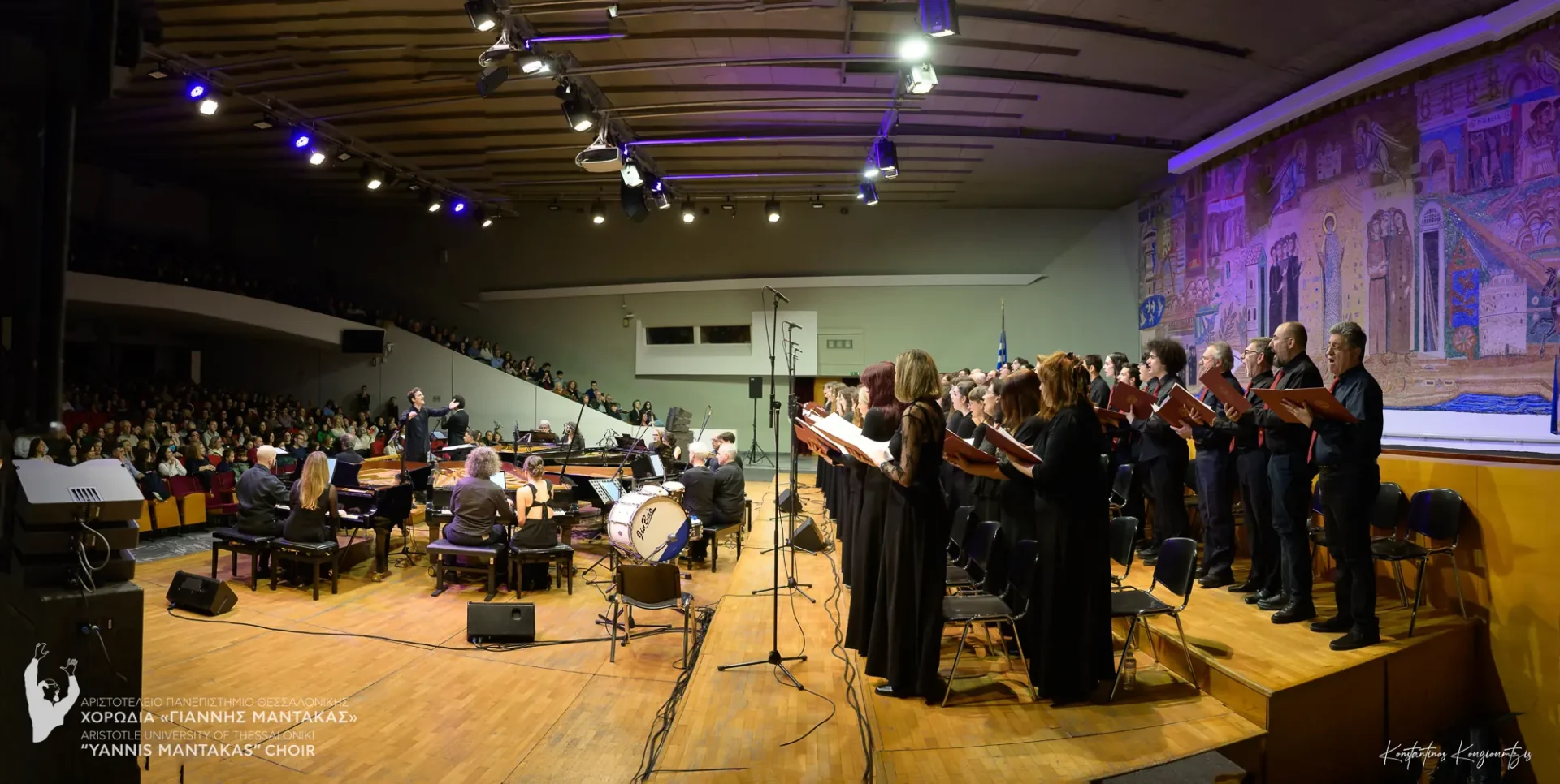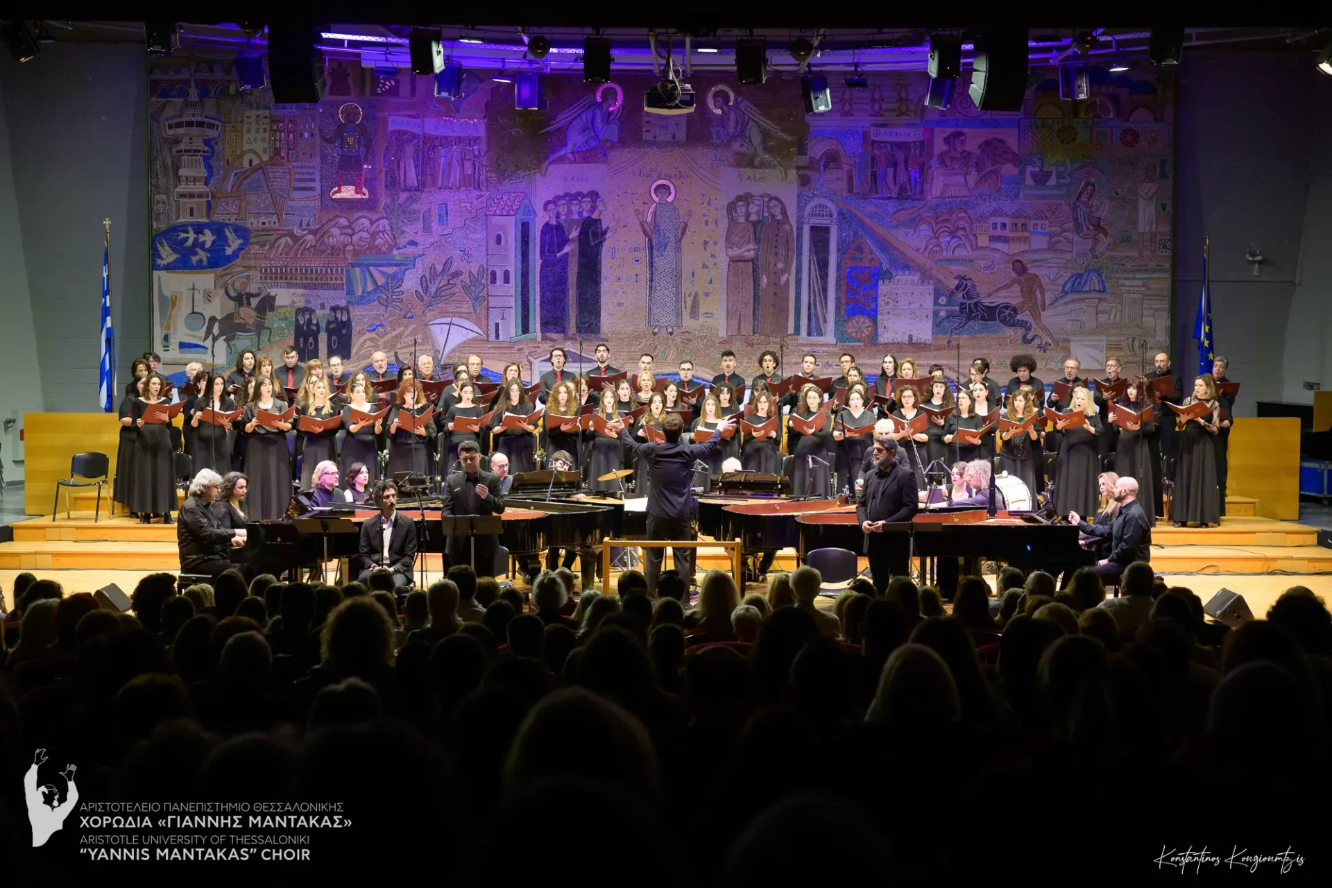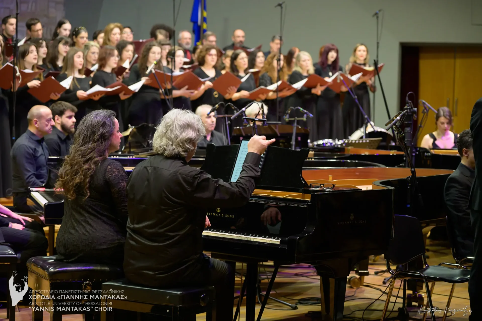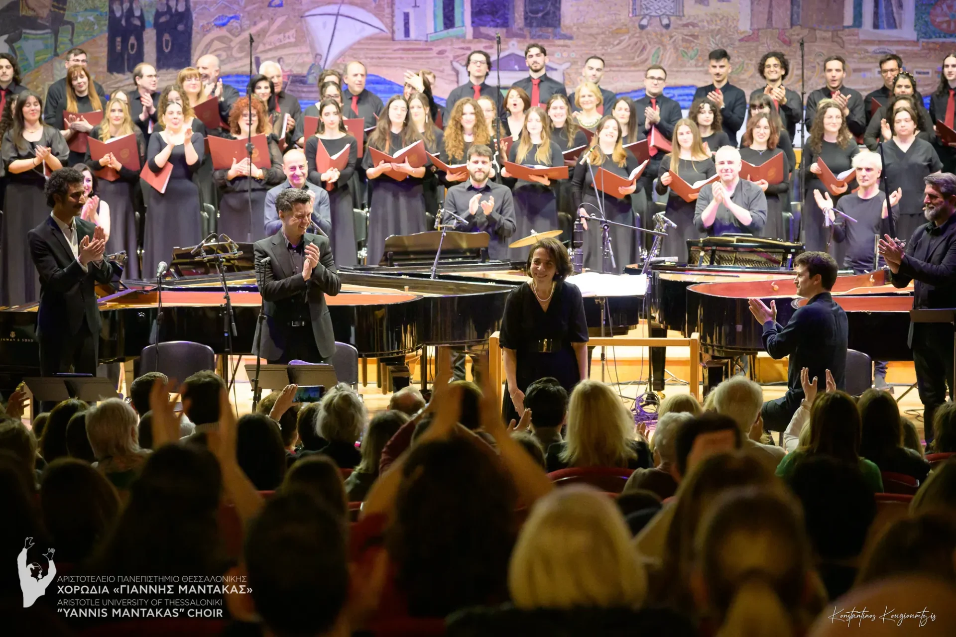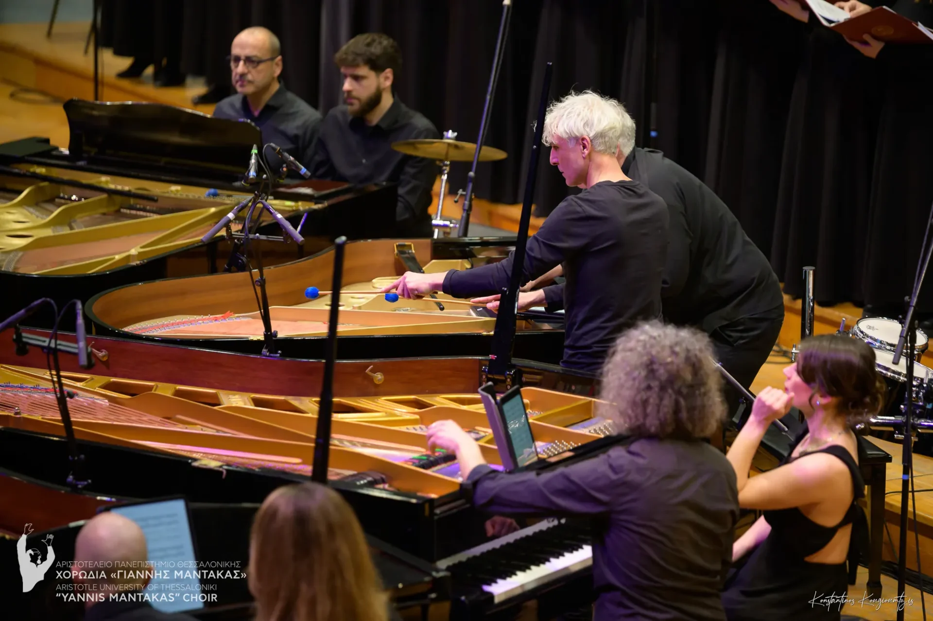 Η χορωδία μας είχε την τιμή να συμπράξει με το Piandaemonium, το μοναδικό παγκοσμίως πιανιστικό σύνολο αποτελούμενο από 6 πιάνα και 12 πιανίστες, το οποίο άνοιξε την αυλαία του φετινού Φεστιβάλ. Το σύνολο επιχειρεί μια νέα ηχητική προσέγγιση του έργου, μεταφέροντας την πολυεπίπεδη μουσική γλώσσα του Θεοδωράκη σε ένα εντυπωσιακό πιανιστικό ηχοτοπίο. Η παρουσίαση στηρίχθηκε στη μεταγραφή/διασκευή για 6 πιάνα των Κώστα Χάρδα και Νίκου Πουλάκη, μια τολμηρή και δημιουργική επανεξέταση του έργου, η οποία αναδεικνύει τη δυναμική του μέσα από μια σύγχρονη, πιανιστική ορχήστρα.