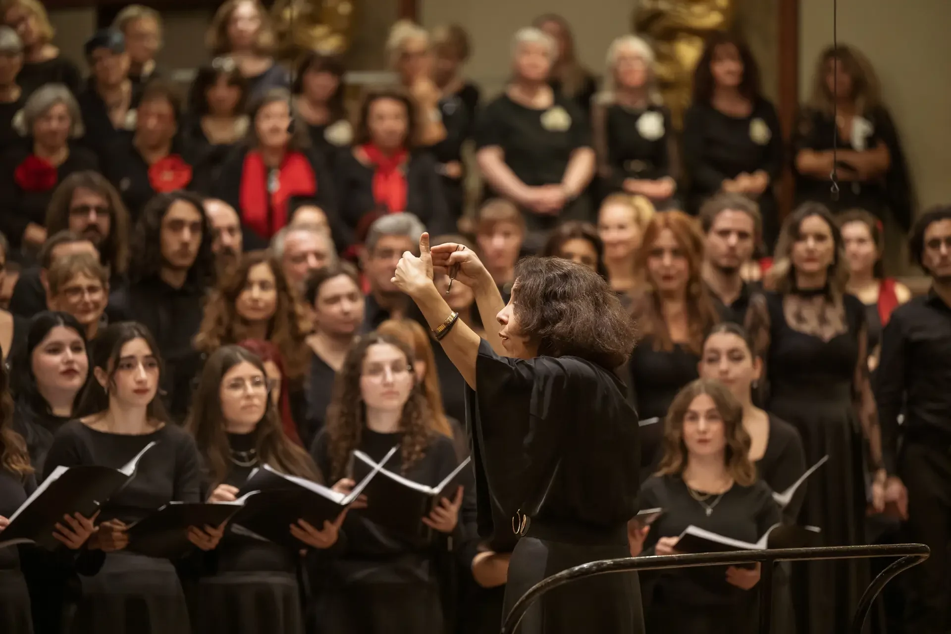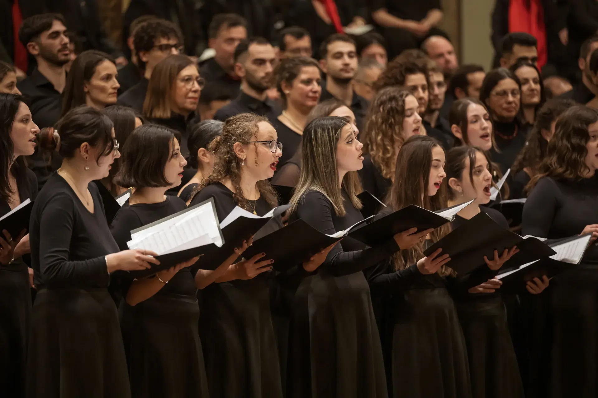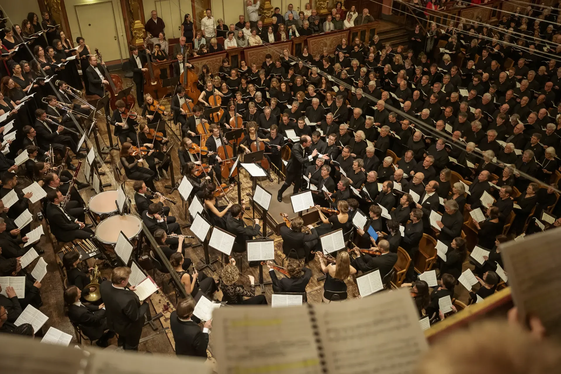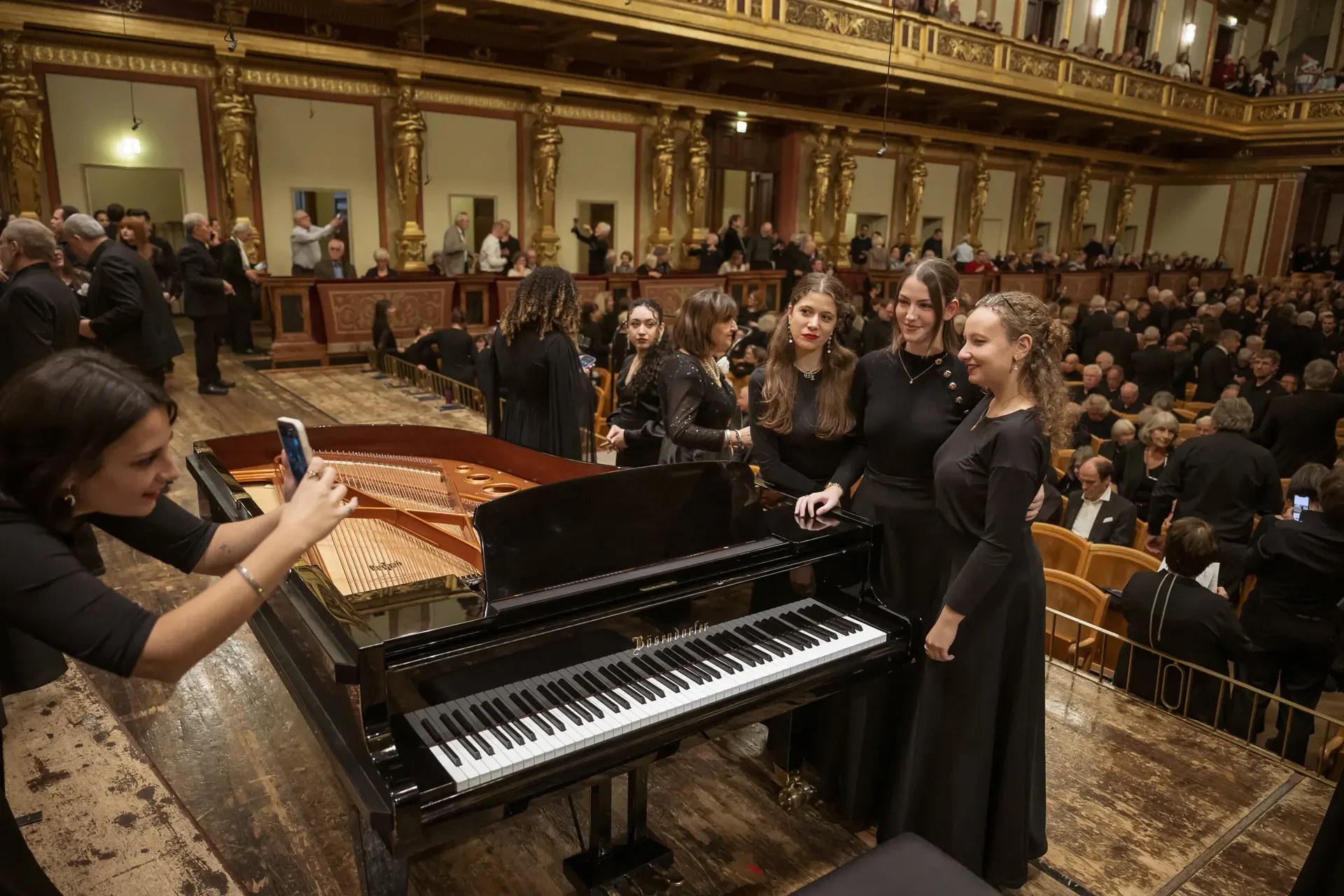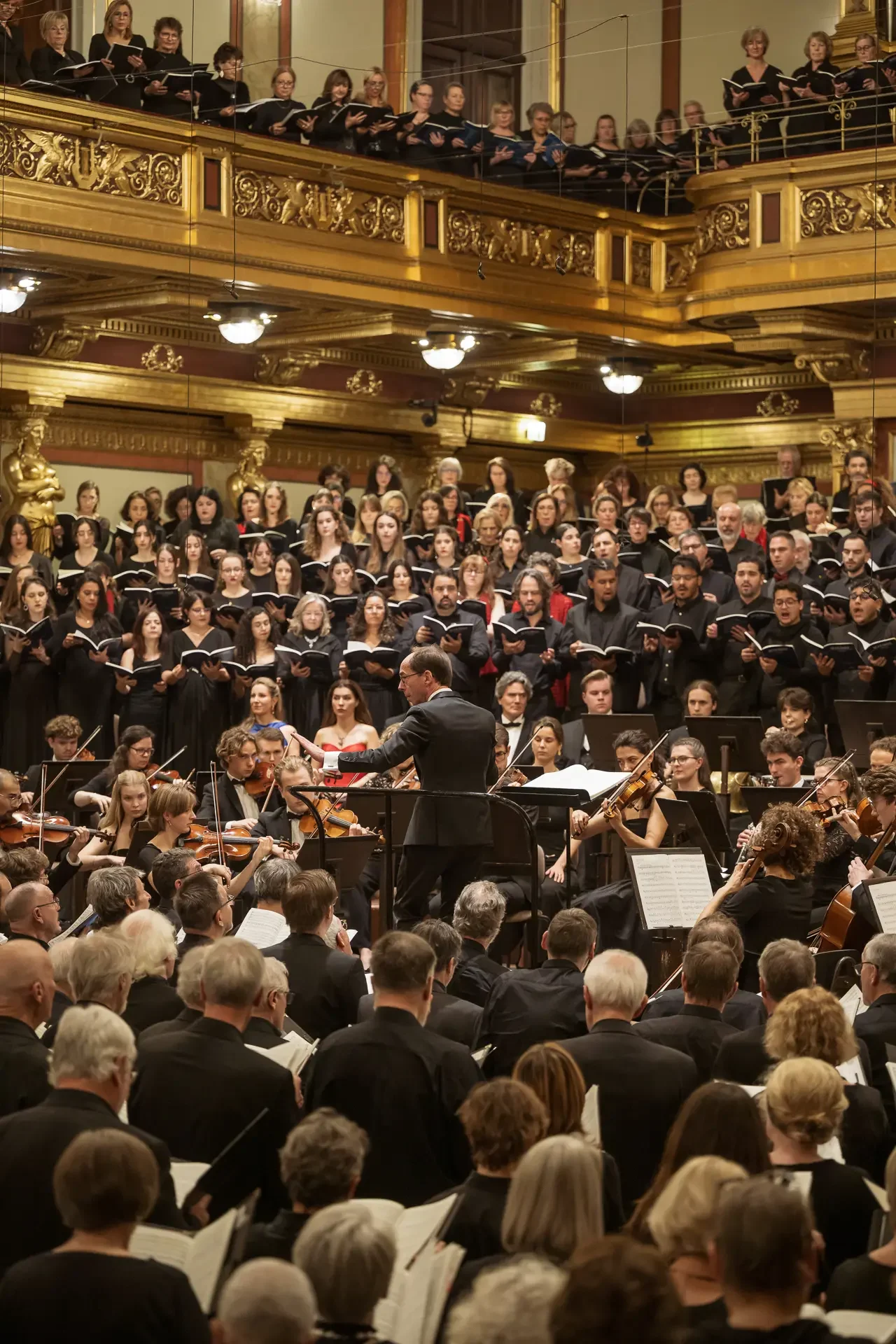 Η κεντρική συναυλία του φεστιβάλ στη Βιέννη δόθηκε στην ιστορική Χρυσή Αίθουσα του Musikverein, όπου 1000 χορωδοί από όλο τον κόσμο ένωσαν τις φωνές τους, ερμηνεύοντας την εμβληματική, τελευταία «Λειτουργία σε Μι ύφεση μείζονα» του Franz Schubert. Μαέστρος της βραδιάς ήταν ο Heinz Ferlesch. Η συναυλία ξεκίνησε με μικρά μουσικά δωράκια, καθότι 9 χορωδίες, ανάμεσα στις οποίες και η δική μας, είχαν την ευκαιρία να ερμηνεύσουν ένα σύντομο πρόγραμμα της επιλογής τους. Παραμένοντας πιστοί στο επετειακό έτος για τα 100 χρόνια από τη γέννηση των Μάνου Χατζιδάκι και Μίκη Θεοδωράκη, παρουσιάσαμε «Το Τριαντάφυλλο» και «Με το Λύχνο του Άστρου» υπό τη διεύθυνση της μαέστρου μας, Εριφύλης Δαμιανού.