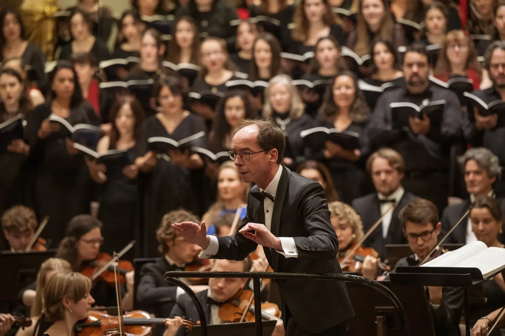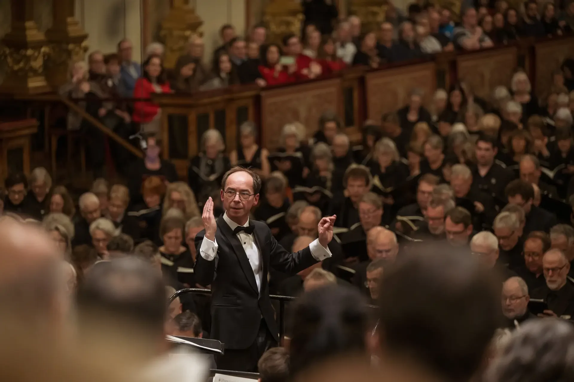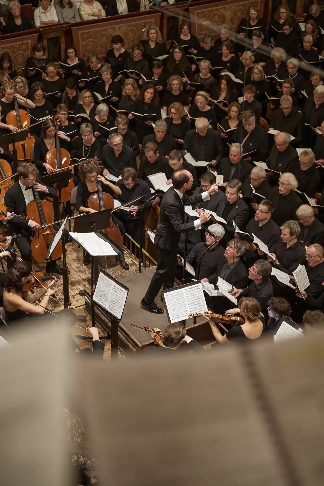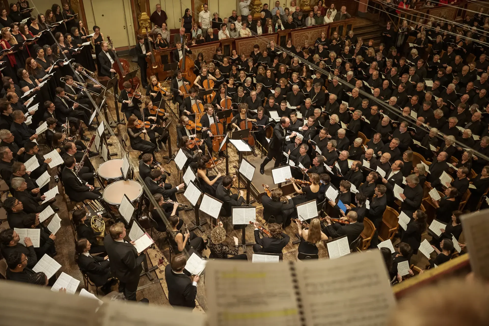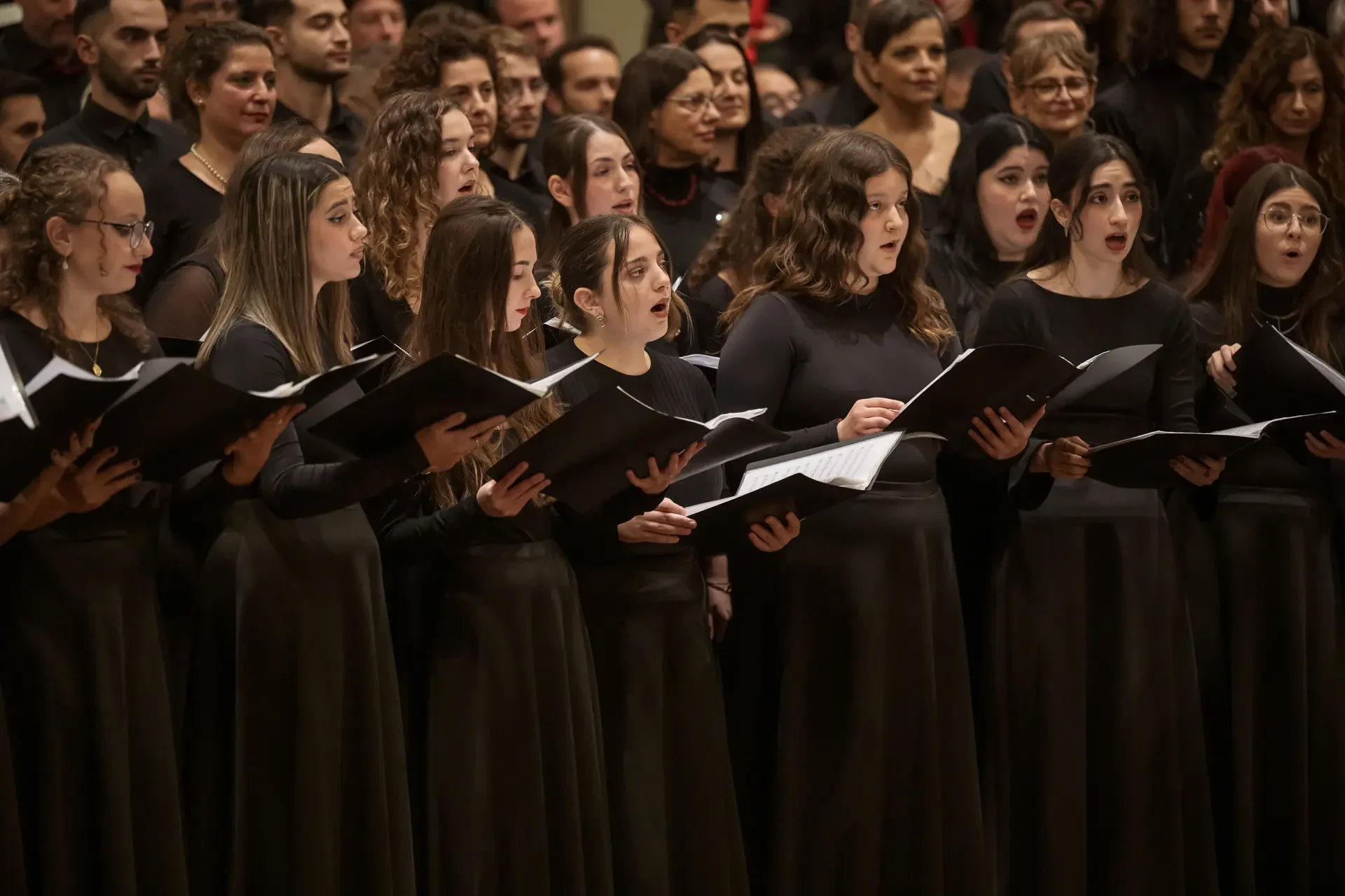 Η κεντρική συναυλία του φεστιβάλ στη Βιέννη δόθηκε στην ιστορική Χρυσή Αίθουσα του Musikverein, όπου 1000 χορωδοί από όλο τον κόσμο ένωσαν τις φωνές τους, ερμηνεύοντας την εμβληματική, τελευταία «Λειτουργία σε Μι ύφεση μείζονα» του Franz Schubert. Μαέστρος της βραδιάς ήταν ο Heinz Ferlesch. Η συναυλία ξεκίνησε με μικρά μουσικά δωράκια, καθότι 9 χορωδίες, ανάμεσα στις οποίες και η δική μας, είχαν την ευκαιρία να ερμηνεύσουν ένα σύντομο πρόγραμμα της επιλογής τους. Παραμένοντας πιστοί στο επετειακό έτος για τα 100 χρόνια από τη γέννηση των Μάνου Χατζιδάκι και Μίκη Θεοδωράκη, παρουσιάσαμε «Το Τριαντάφυλλο» και «Με το Λύχνο του Άστρου» υπό τη διεύθυνση της μαέστρου μας, Εριφύλης Δαμιανού.
